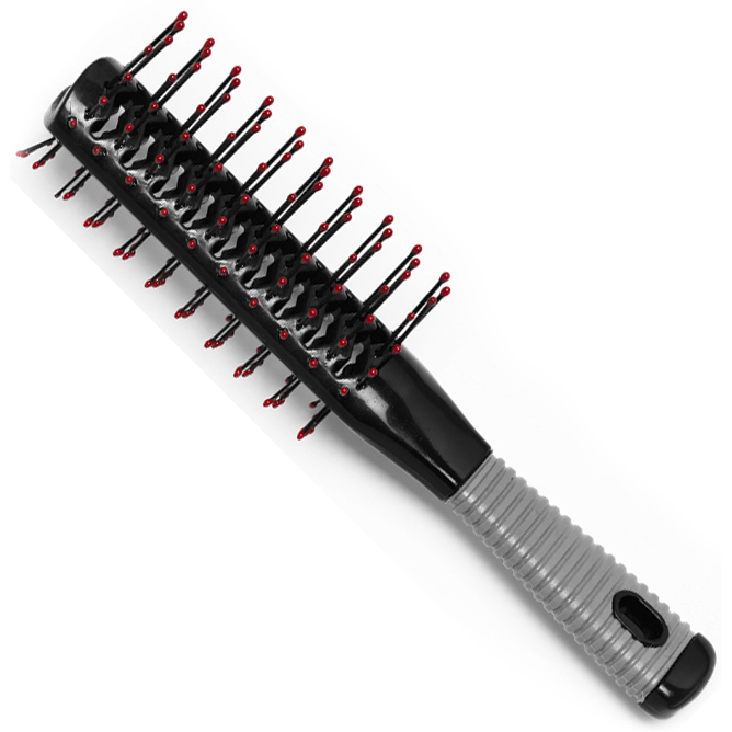 Dubbeltunnelborste Tvåsidig, ena sidan långa piggar, andra sidan korta piggar. Gummiöverdraget skaft. Antistat. 12-pack