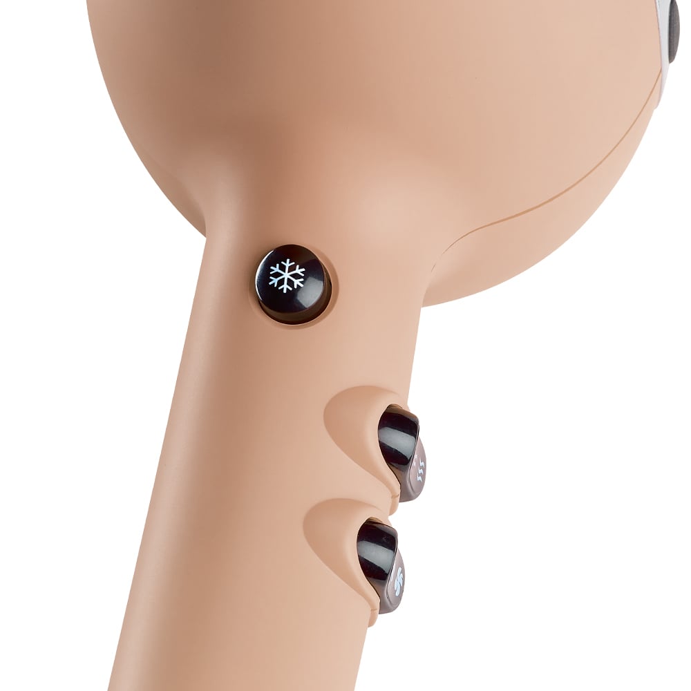 Kompakt fön med långvarig växelströmsmotor och Ionic-teknologi. Det gör att vattnet avdunstar snabbare och torktiden blir kortare. Hälsan och strukturen på håret håller sig dessutom bättre. Tack vare luftflödet torkar fönen håret väldigt snabbt. Att spara upp till 50% av den normala tiden det tar att föna, är ett måste för varje professionell frisör! Levereras i en matt finish i färgen natural rose.