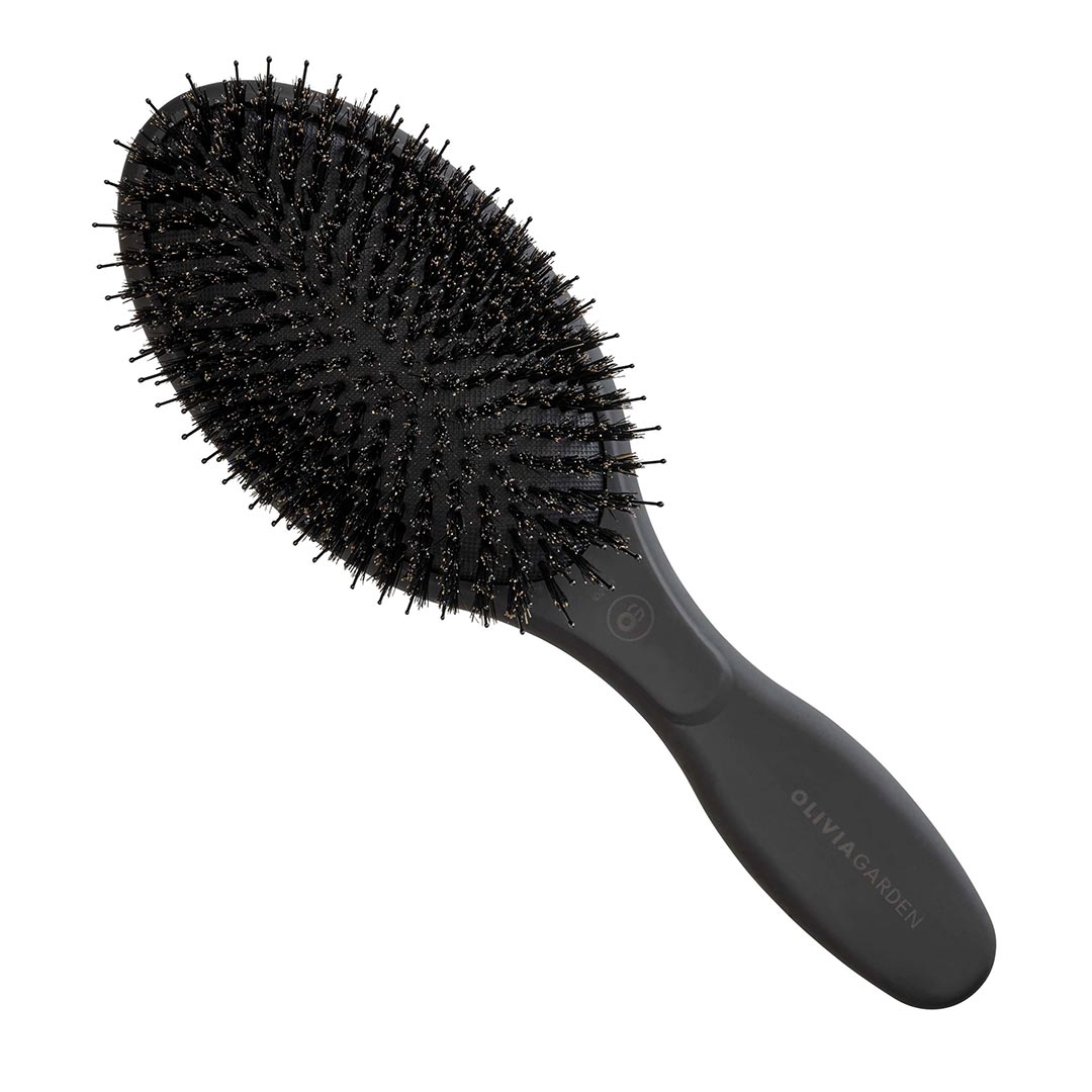 Mjuk kudde med nylon- och vildsvinsborst som fördelar hårets naturliga oljor jämnt över håret med maximal komfort.