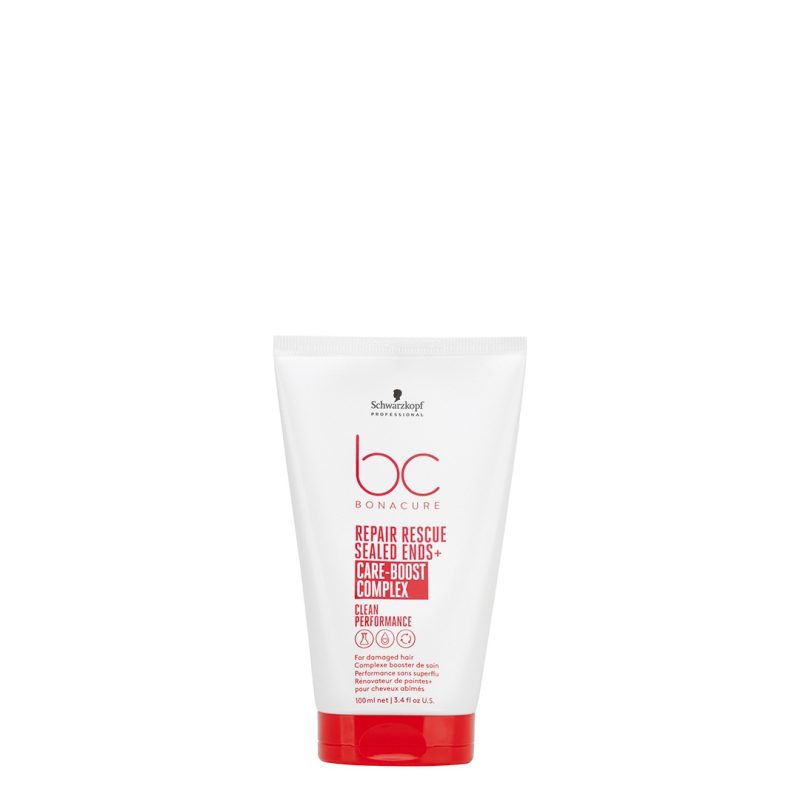Bonacure Repair Rescue Sealed Ends+ är ett intensivt krämserum som försluter hårtopparna och förhindrar kluvna hårtoppar. Produkten har en förbättrad formula med Care Boost Complex som ger förstärkt vård och återfuktar håret på djupet samtidigt som håret förblir lätt.